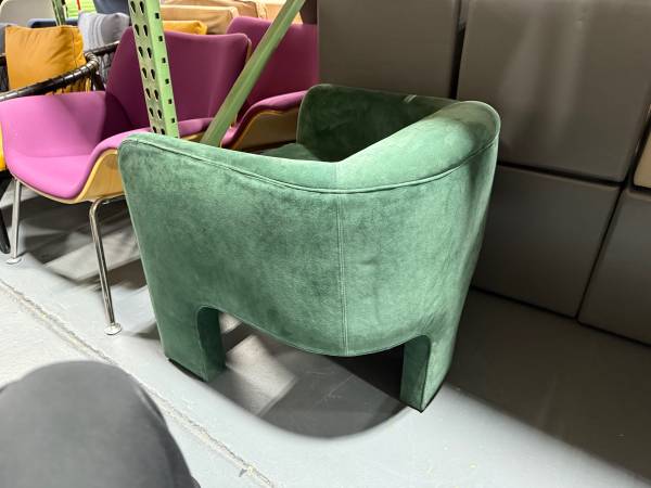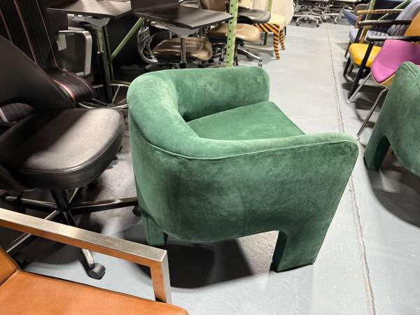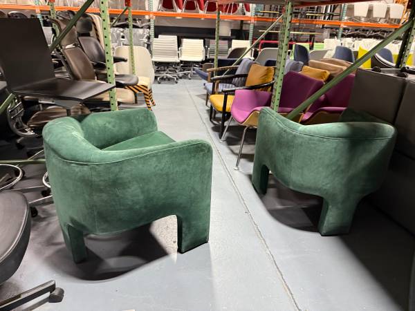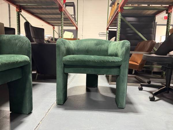Gorgeous pair of real suede leather, designer modern lounge arm chairs. Well built, very comfortable seating.Selling the pair for $1,600. Pick up from our warehouse in Saddle Brook, NJ. Please email...
