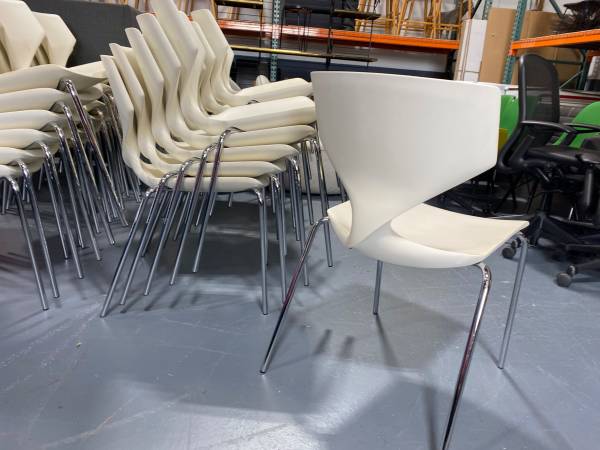 In excellent condition, authentic TONON QUO stackable chairs. Made in Italy. Material is a soft touch polyurethane, like rubber. Very comfortable. Great twist design. Chairs retail for $755 EA. Selling for $120 EA. We have 28 AVAILABLE.