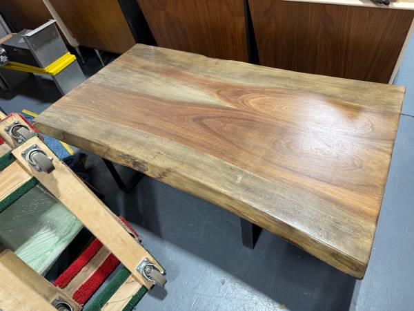 Very nice solid wood live edge coffee table. Metal base. Heavy sturdy piece. Selling for $150. Pick up from our warehouse in Saddle Brook, NJ. Please email me if you have any questions. Thank you.