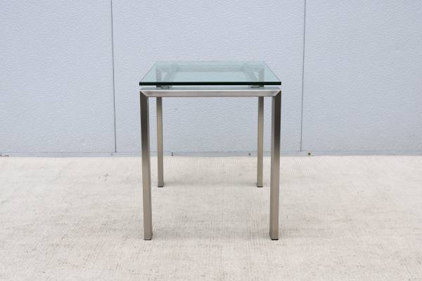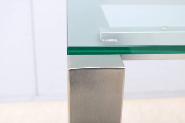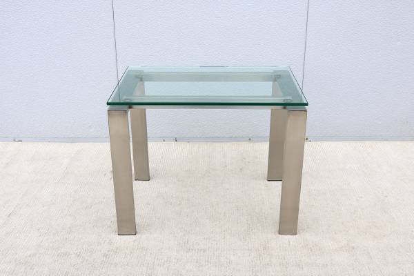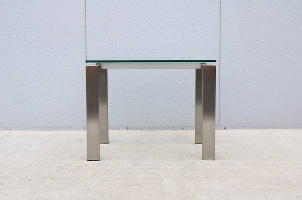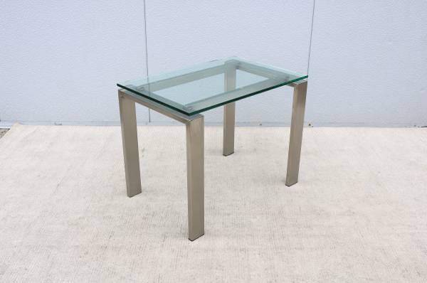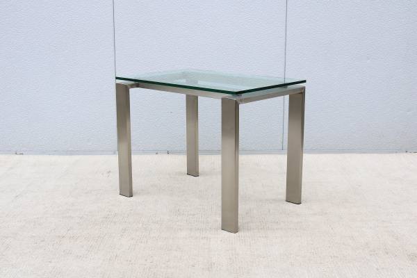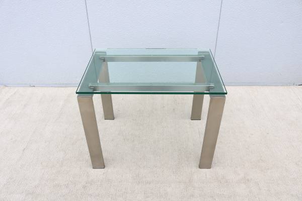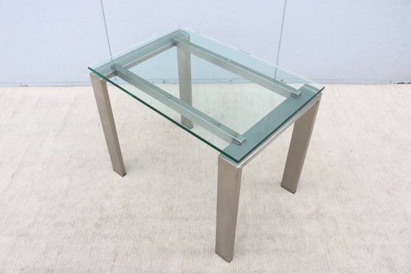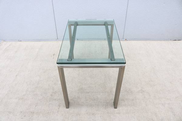 Condition: In good vintage condition, the glass top is in excellent condition with "no chips." The stainless-steel frame is in very good cosmetic condition but has some minor hairline scratches due to normal use and age, in excellent structural condition (see the photos please)