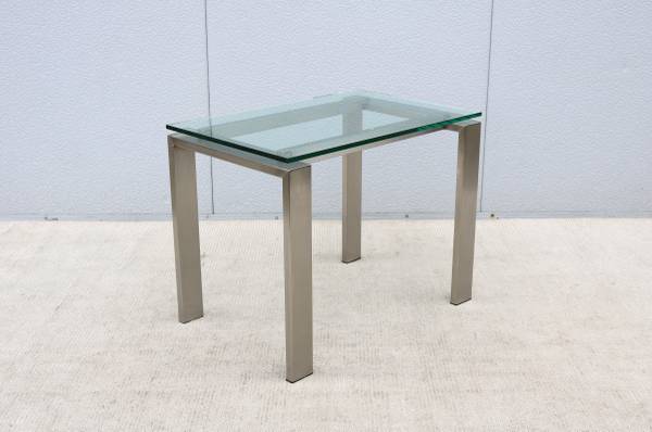 Stunning and elegant 1980s custom-made brushed stainless steel and clear glass rectangular side occasional table, which can be used as a coffee table.