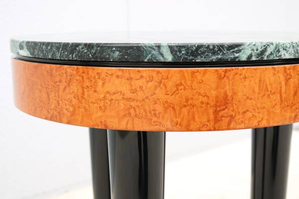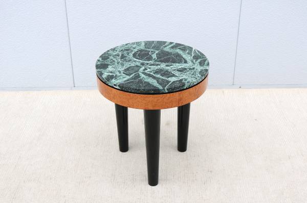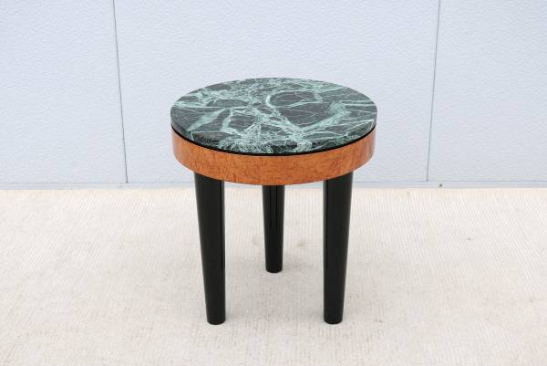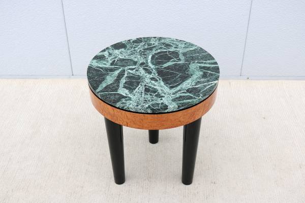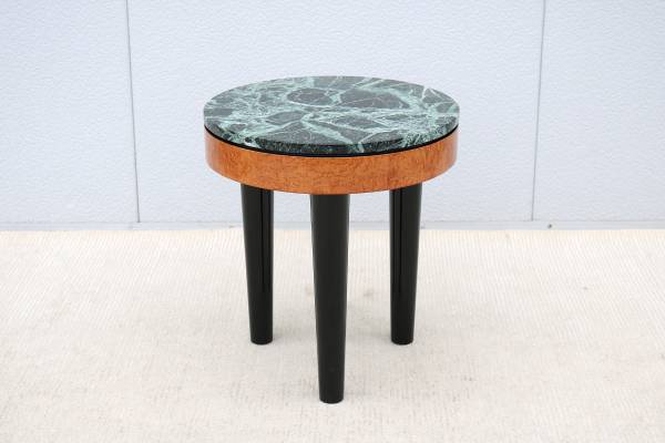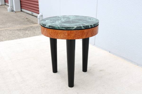 Stunning vintage Art Deco style tripod burl wood and marble round side table/Lamp table.