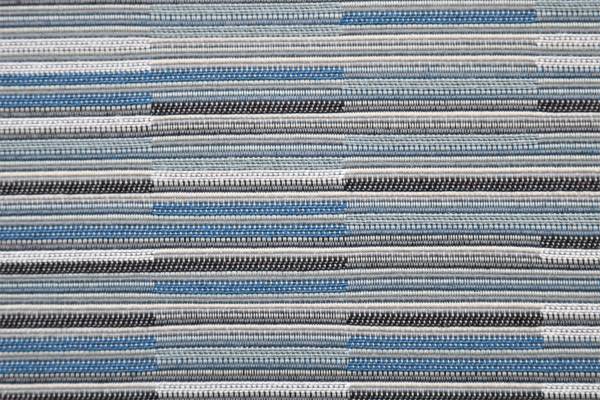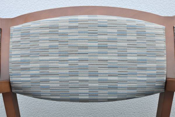 Half upholstered back in fabric, color: Blue, beige, and khaki.