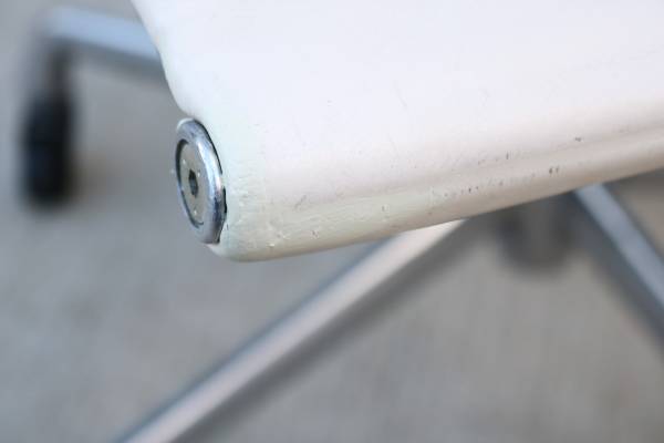 The aluminum arms have chipping/scratches on the transparent plastic coating.