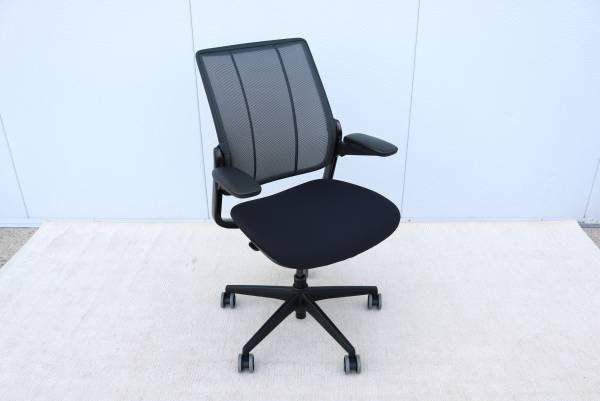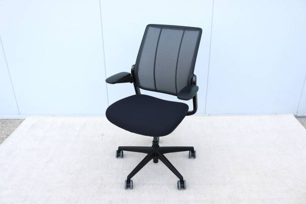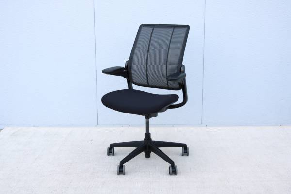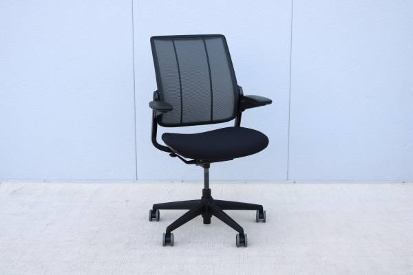 The Diffrient Smart chair was created with Humanscale's revolutionary Form-Sensing Mesh Technology. It's Smart's tri-panel backrest fits like a perfectly tailored shirt to provide exceptional lumbar support.
