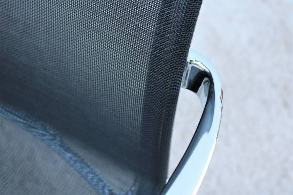 Condition: In excellent slightly used condition, clean and ready to be used immediately, the mesh is in excellent condition with no rips, tears, or stains. The aluminum frame has a few minor hairline scratches due to normal use and stacking, in excellent structural condition (see the photos please)
