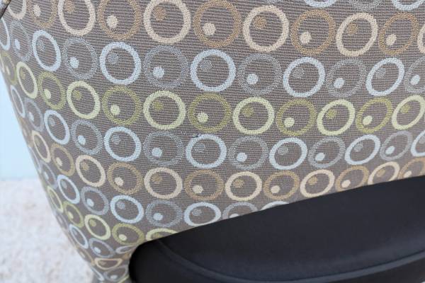Condition: In very good used condition, the fabric has one very small tear to the back side of the chair nothing serious photo is provided, the chrome legs and glides are in excellent mint condition, in excellent structural condition, clean and ready for a new home (see the photos please)