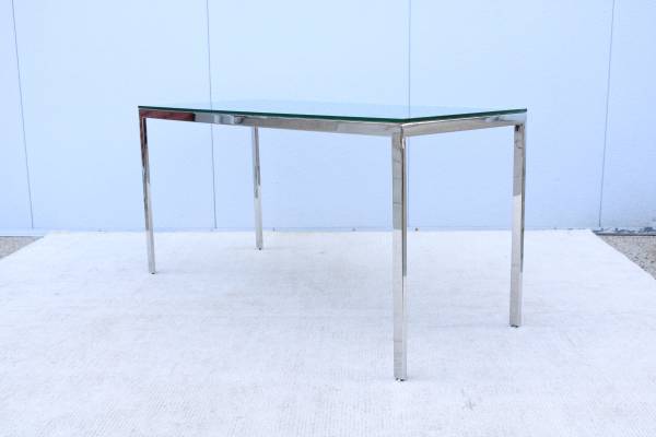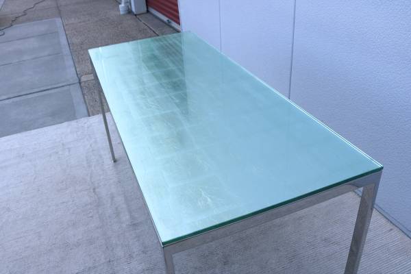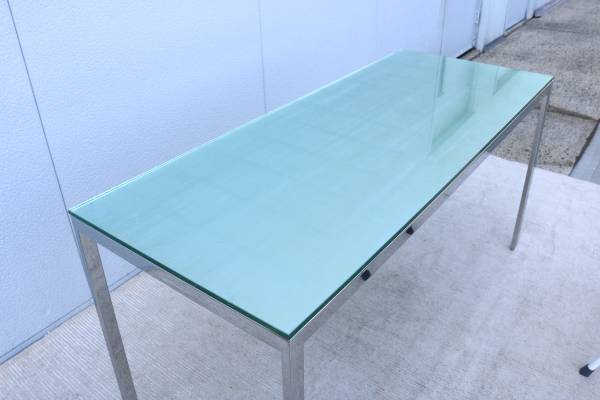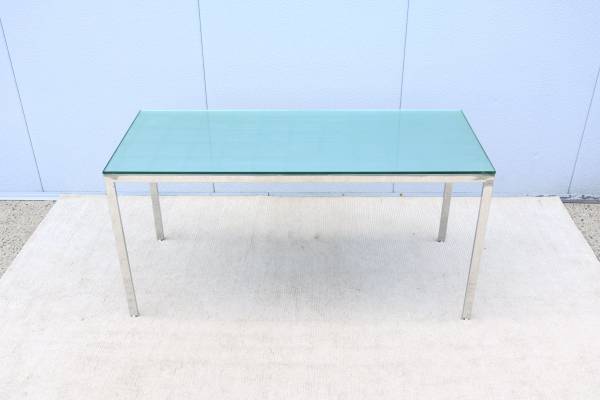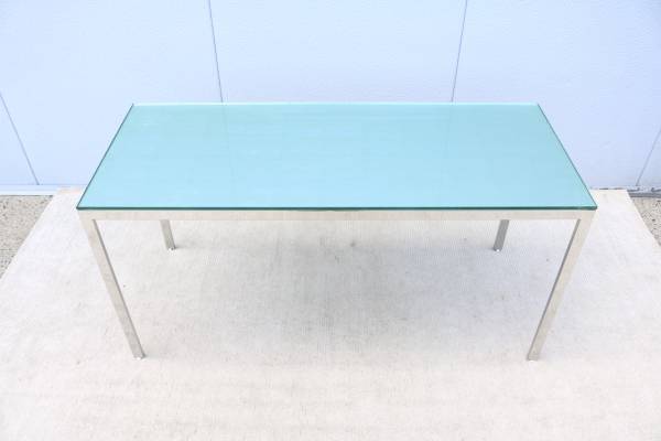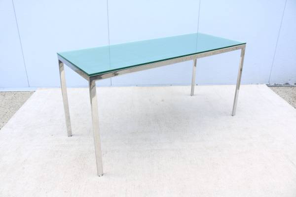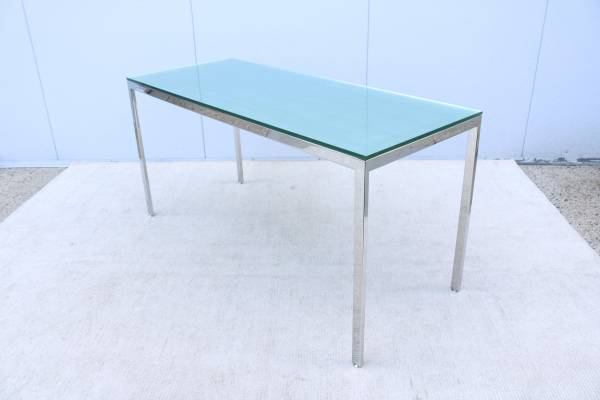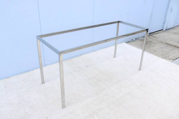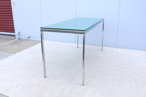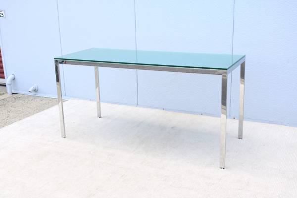 Fabulous vintage mid-century modern Milo Baughman style rectangular glass and stainless steel desk table or dining table.