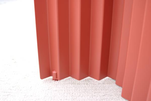An eye-catching sculptural design, the rounded square thin steel top and the accordion shaped steel legs add exceptional visual appeal and create a dimensional structure that plays with a balance of light and shade effects.