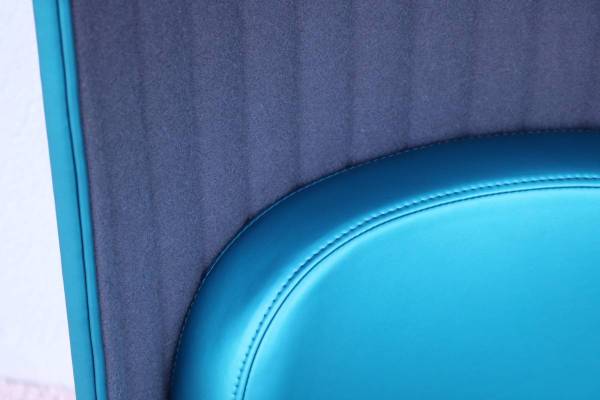 The Cega high-back chair by Boss Design has a symmetrical tubular shape and boasts superior acoustic qualities.