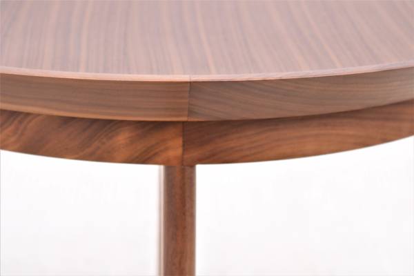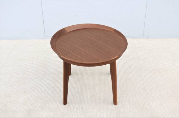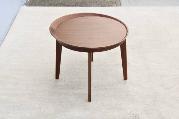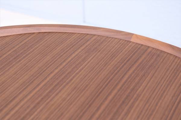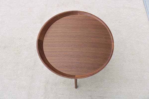 An asymmetrical rim of solid walnut encircles the perimeter.