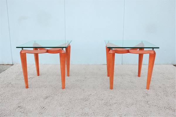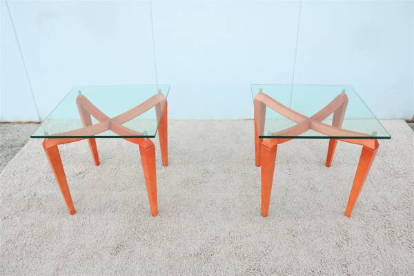Fabulous pair of modern Italian square side tables, inspired by Scandinavian design.