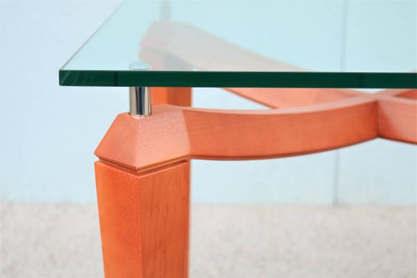 It features a sculpted base that sets up the striking profile, making the tabletop appear to float above the wooden base for a sophisticated and smooth finish, and it will make your space feel larger with its transparent surface.