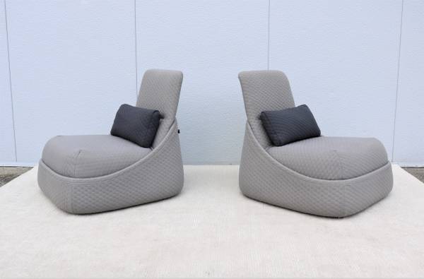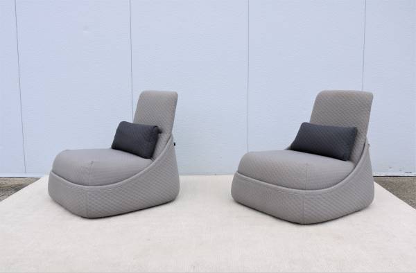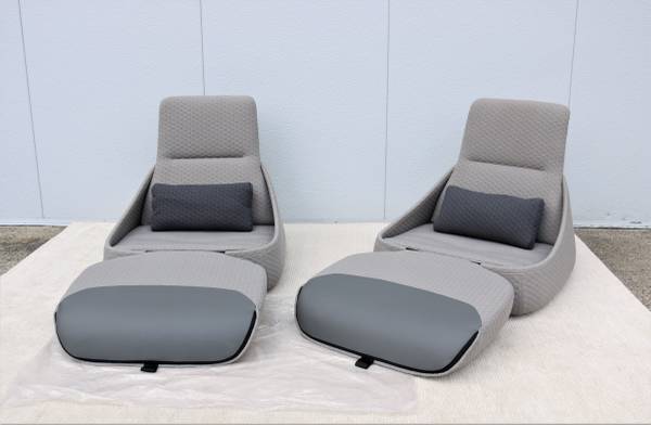 Fabulous pair of Hosu convertible chaise lounge chairs with ottoman and lumbar pillow by Coalesse.