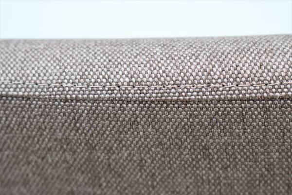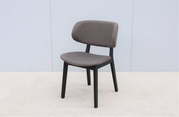 Upholstered seat and back in gray charcoal fabric color.