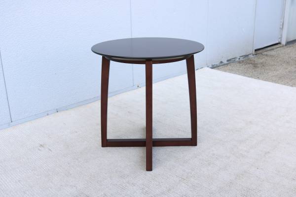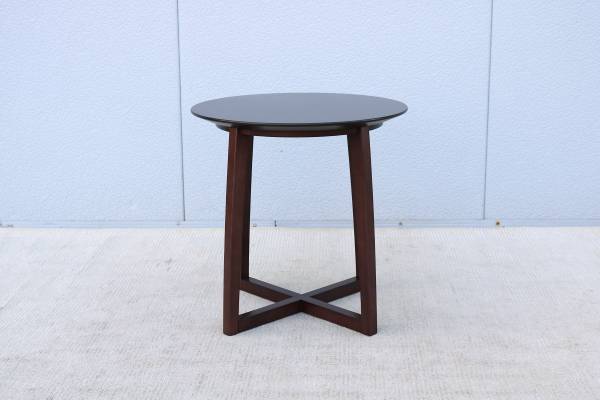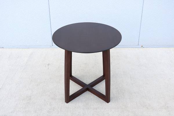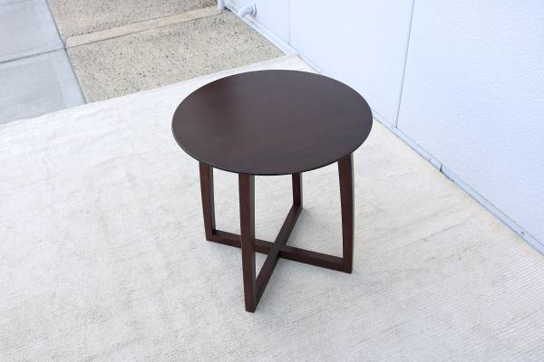 Fabulous Scandinavian style Modern Amenity European beech wood round end table by OFS and Carolina.