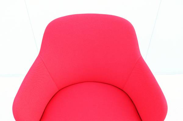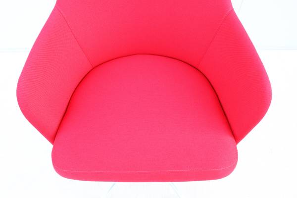 Fully upholstered seat and back in red color polyester fabric.