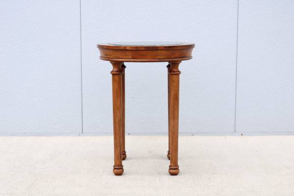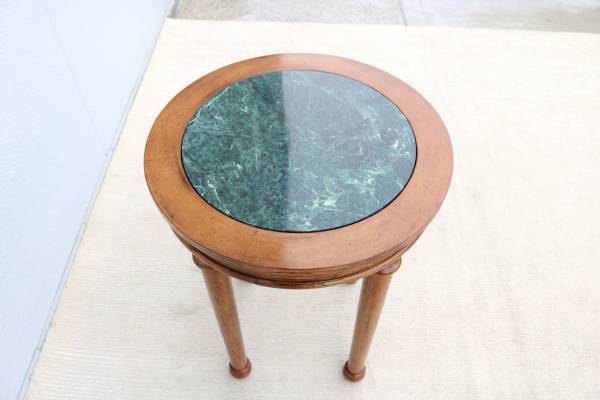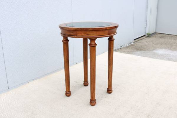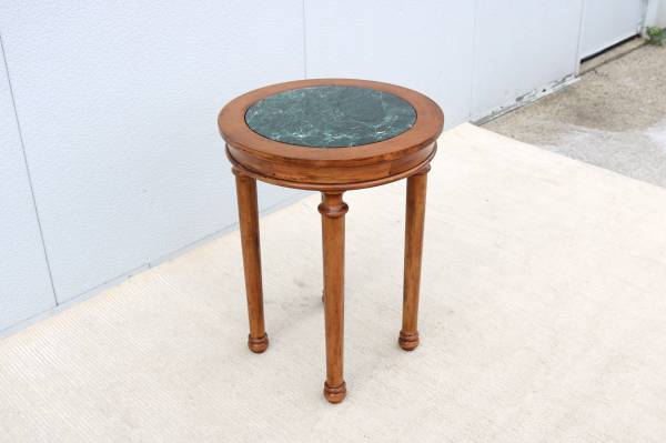 Stunning vintage French style distressed fruitwood round tall side table/Lamp table.