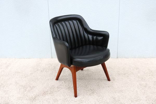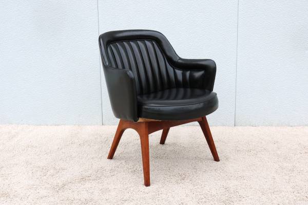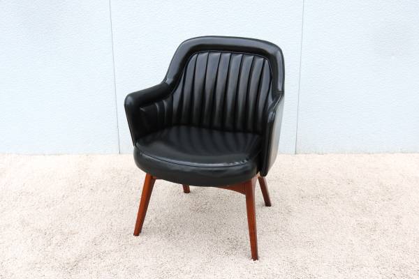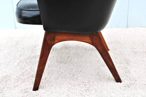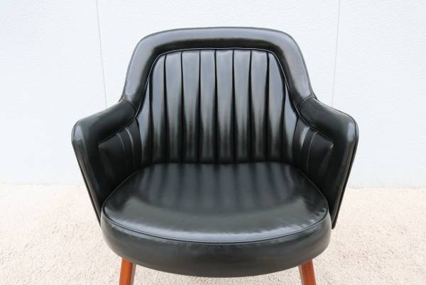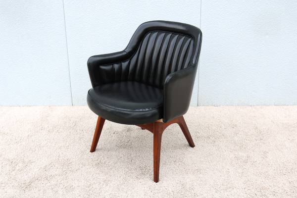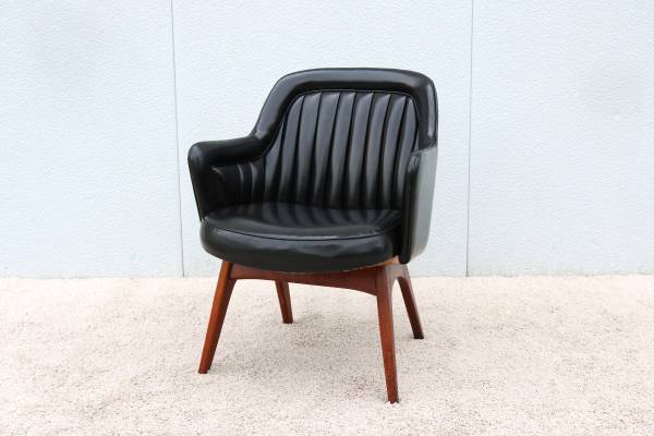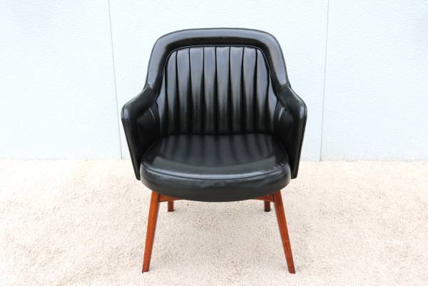 Condition: In very good vintage condition and looks absolutely wonderful for a chair of its age, the Naugahyde is in very good condition, has age-appropriate minor wear and fantastic patina "no rips or tears" The wood base and legs have some hairlines scratches and small dings/nicks due to normal use and age, in excellent structural condition, has been professionally cleaned and ready to be used immediately (see the photos please)