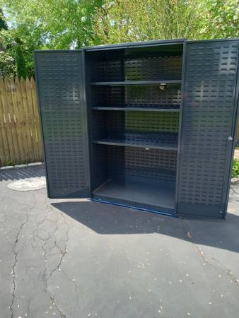 Large storage closet, hevy duty, measures 78" high x 48" wide x 24" deep, 3 movable shelfs, $200, email me to pick up.... check "more ads"