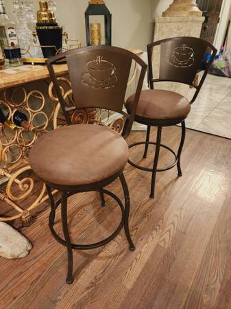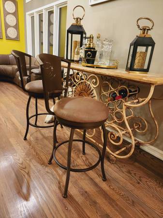 2 BEAUTIFUL SOLID PIER 1 IMPORTS BAR STOOLS. GREAT SPACE SAVERS All for 279 VERY STURDY AND STRONG IF INTERESTED PLEASE CALL OR TEXT