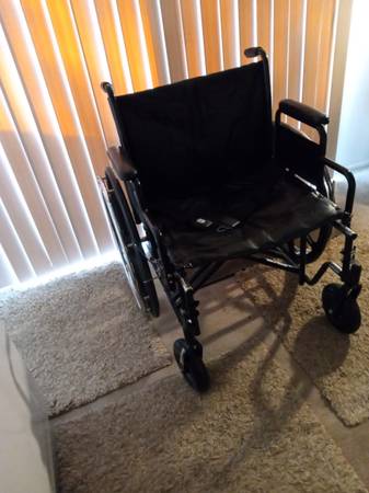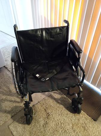 Selling this wheel chair, good shape, has a seat belt, $50, send me a phone # I will call you about pick up...Check "more ads"