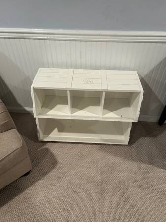 Four (4) Pottery Barn Kids Stackable Storage Bins / Bookcase. Two (2) are open storage and two (2) have dividers. Great for basement or playroom. $229 ea on website but you can have all four (4) for $200. One of the four has some nail polish / paint stains. Could try to remove or repaint. Each bin is roughly 36 x 12 x 12