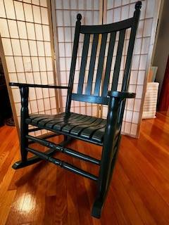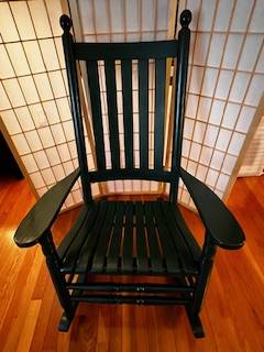 Solid wood porch rocker with - green Chair cushions (like new) included.