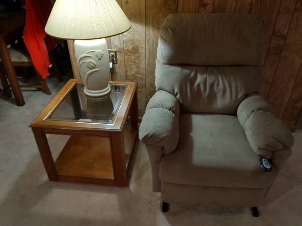 Living room, bedroom, kitchen, dining room and den furniture, electric lift)recliner chair, lamps, paintings, entertainment equipment, clocks, garage and tool items. Snowblower and lawnmower.
