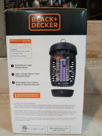 🦟 BLACK+DECKER Outdoor Bug Zapper – Covers 600 sq ft – Brand New in Box ✅ Brand New, Sealed Box ✅ Model: BDPC941 ✅ Coverage: Up to 600 sq. ft. ✅ Includes: Hanging chain + grid cleaning brush ✅...