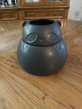 Urban Outfitters Black Ceramic Panda Planter with Hidden Storage in Bottom
