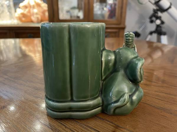 Condition: The outside is like new. The bottom has some minor normal wear and tear where it sits on the table (nothing major). It does have some residue along the top lip and on the inside. I did try to wash it and some came off and some didn’t. I think if you’re really determined you probably could get it all off, but I can’t promise that. I didn’t go crazy with it because that part would be largely unseen.