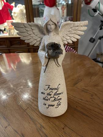 Napco Angel with Flowers Resin Garden Statue - Inscribed with - Friends are the Flowers that Bloom in your Life