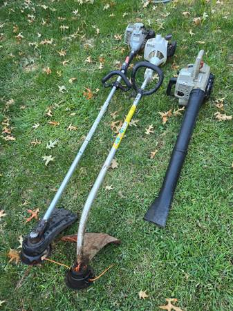 Stihl trimmer weed wacker FS 46C, Echo trimmer weed wacker SRM-210, and Echo leaf blower ES-210. This is for all three. These were purchased new, and were used at home till I switched to battery. They haven't been ran for a few years, and not sure if they run, and need a carb cleaning. Check out the pictures. Thanks!