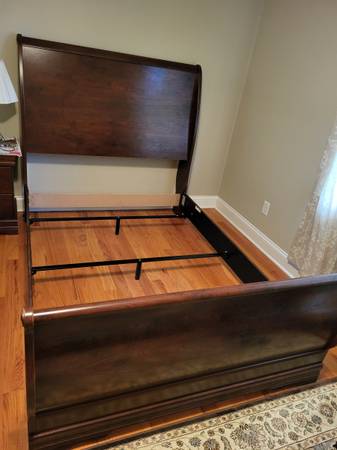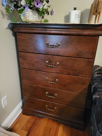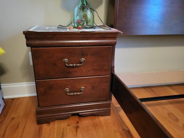 Bedroom set: full-size mattress and box spring (both new), bed, chest, night stand: $300 for all, or best offer. Can also sell separately.