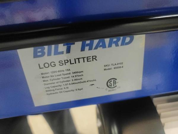 Electric 15amp Horizontal Splitter W/Hydraulic Ram