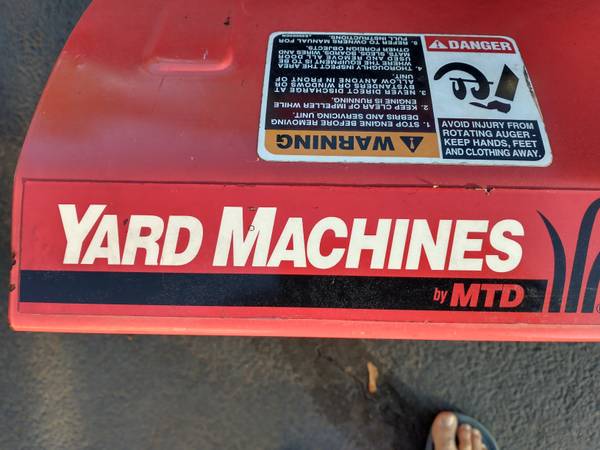 Fore Sale: Yard Machine MTD 2 stage Snow blower, 8HP, 5 Forward, 2 Reverse Speeds. 24" clearing width, both electric and pull start Just serviced - very good condition - GREAT PRICE! (why pay $225 in December)
