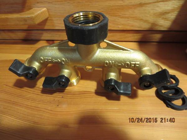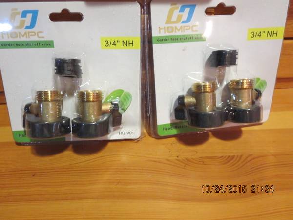 LOT INCLUDES: 2 PACKAGES OF BRASS CONNECTORS---2 PACKAGES GARDEN HOSE SHUT OFF VALVES--- 2 PACKAGES OF TWINKLE STAR 4 WAY HEAVY ADAPTER WITH 4 VALVES