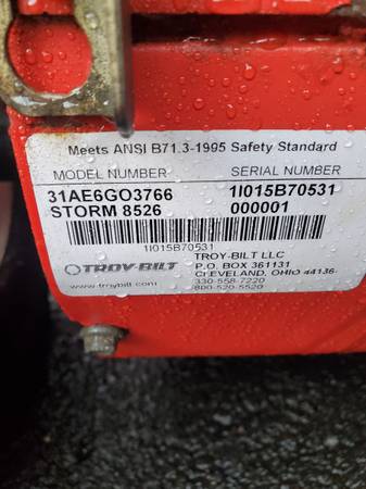 Has new carburetor, fuel line, fuel shut off, sheer bolts, drive and auger belts and oil was just changed.