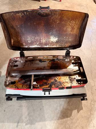 Portable Grill with stand great working condition we used for tailgating and camping works great local pick up only cash only no Venmo no cash app