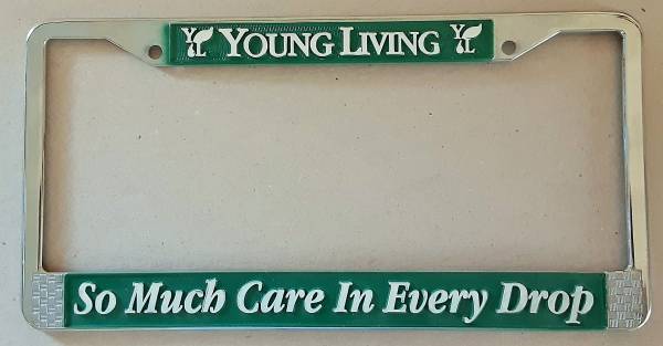 One (1) standard-sized ... metal license plate holder / frame ... released by "Young Living" Essential Oils - based in Utah (founder: Gary Young).