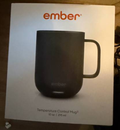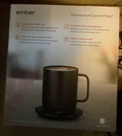 For sale in like new condition used only once ember mug. It keeps your during warm all day long. You can adjust it to temperature you want.