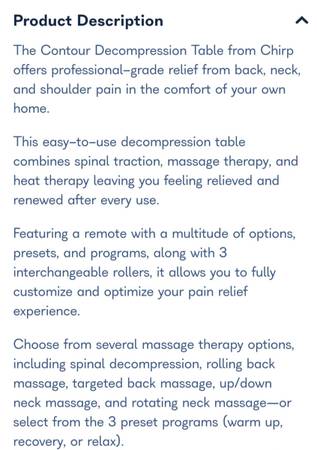 Brand new Chirp Contour decompression table. Back pain? This table offers decomoression snd massage. This goes for 600 dollars. Comes with carrying case. Here's a video...