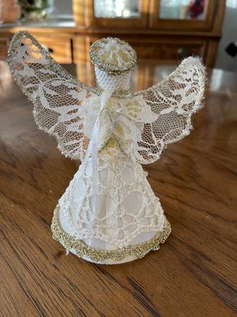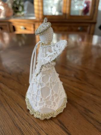 White and Gold Colored Angel Ornament or Small Tree Topper - Crochet, Etc.