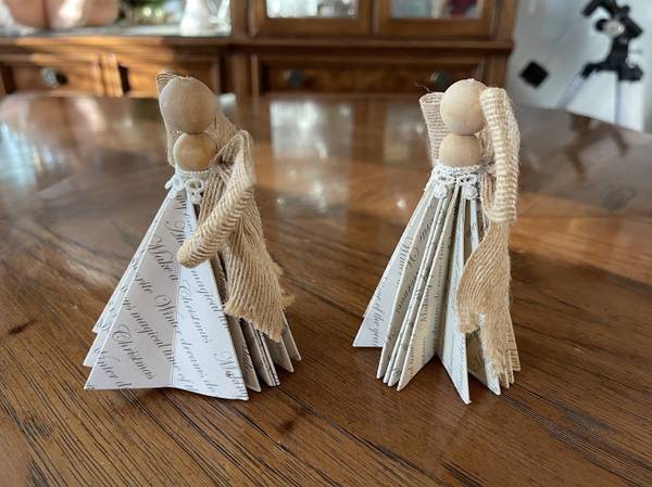 I assume they had halos at one point judging by the glue on the tops of their heads. Beyond that they do have some normal minor wear and tear, but they are still adorable!! Could also use an extra dab of glue on the bottom of the one, but it doesn’t seem to be a big issue (See pics)