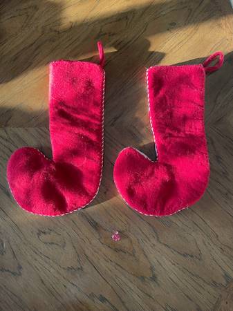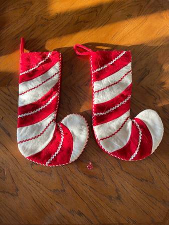 2 Red and White Christmas Stockings - Approximately 17.5” x 10.5”