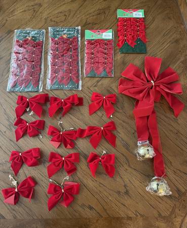 Festive Red Christmas Bows both New and Used - $12.00 for the lot