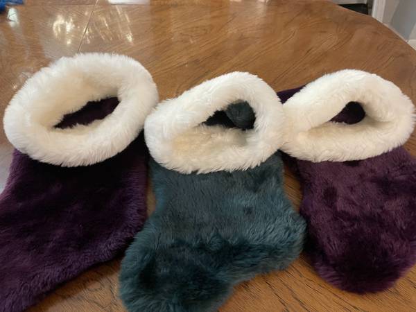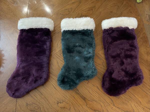 Like New Plush Christmas Stockings - 2 Purple & 1 Green - Super Soft - $10.00 Each or $25.00 for all 3!!