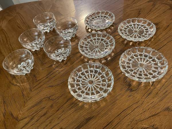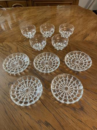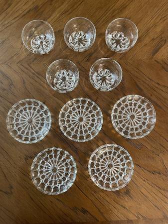5 Gorgeous Glass or Crystal Dessert Bowls from Italy and 5 Small Intricately Designed Plates