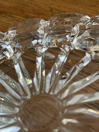 Condition: Excellent!! Overall, they’re in gorgeous condition, but if you hold them up to the light and really look for flaws, you can find an air bubble or two from the manufacturing process and other similar imperfections, but you really have to be looking for them. There is also a small chip on the bottom of one of the glass plates, which I tried to show in the pictures, but even that is so perfectly smooth, I wonder if that was from manufacturing as well.